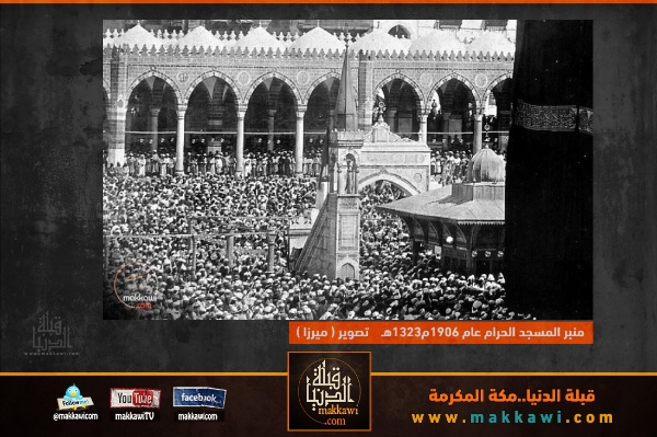 في عام 1908م /1325هـ التقط المصور (محمد علي أفندي السعودي) صورة لمنبر الحرم المكي وقت صلاة الجمعة في موسم الحج والتي نشرت فيما بعد في كتاب (مصور في الحج) والأعلام السوداء منصوبة عليه التي تدل على دخول وقت الصلاة ويظهر اثنين من الأغوات معتلين درجات المنبر أحدهما واقف والآخر جالس وهم في انتظار الخطيب ليقدُم ويلقِ الخطبة .