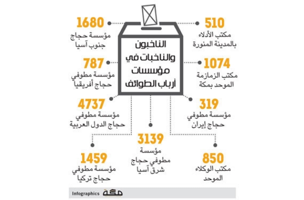 وتابع جمال أن مسارعة مؤسسات الطوافة بإعلانها عبر موقعها أعداد مطوفيها يأتي ضمن البيانات والسجلات الرسمية لكل مؤسسة وهي التي سيتسلمها المشرفون على اللجنة العليا بوزارة الحج لتدوينها بقوائم الانتخابات المقررة والتي تحمل بيانات كل منتخب على حدة.