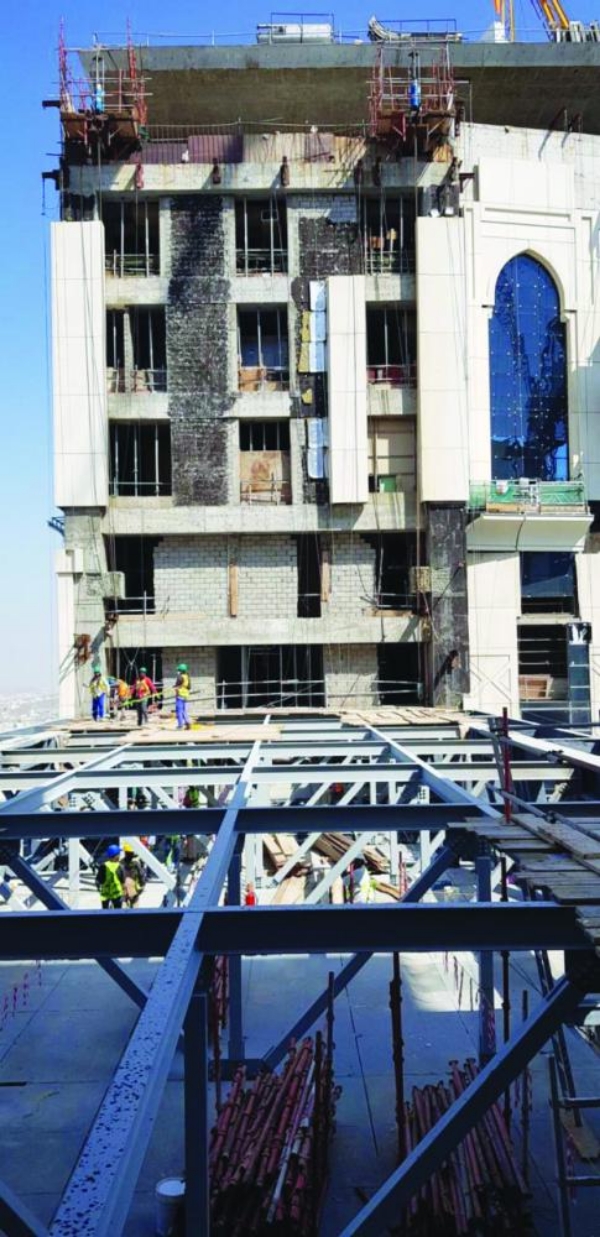 أنهى مشروع جبل عمر بالعاصمة المقدسة أخيرا الأعمال الإنشائية المتعلقة بتركيب أعلى مصلى معلق في العالم بين البرجين التوأمين بالمشروع، بارتفاع 161 م، ليأخذ شكله النهائي بإطلالة بانورامية على الكعبة المشرفة من الجهة الشرقية، ومشروع طريق الملك عبدالعزيز «الموازي» من الجهة الغربية.