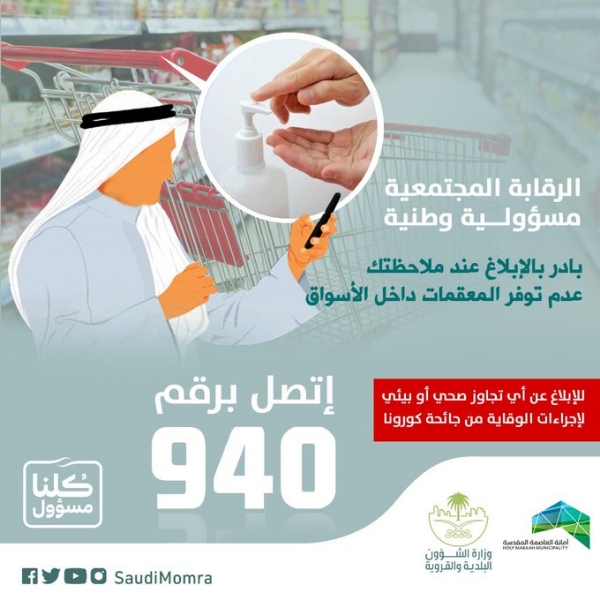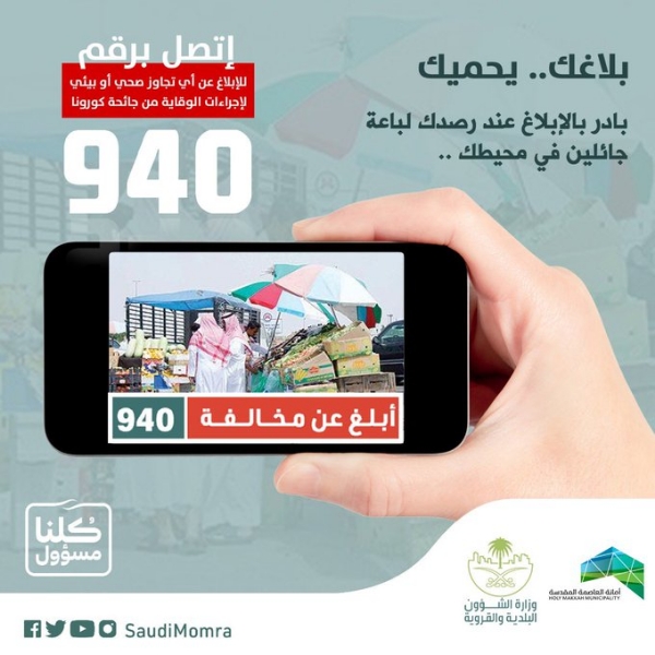 دعت أمانة العاصمة المقدسة، الجميع إلى الإبلاغ عن عددٍ من المخالفات الجديدة تحت عنوان "وعيك سبيل وقايتك"، واعتبرتها من الرقابة المجتمعية ومسؤولية وطنية وأخلاقية.