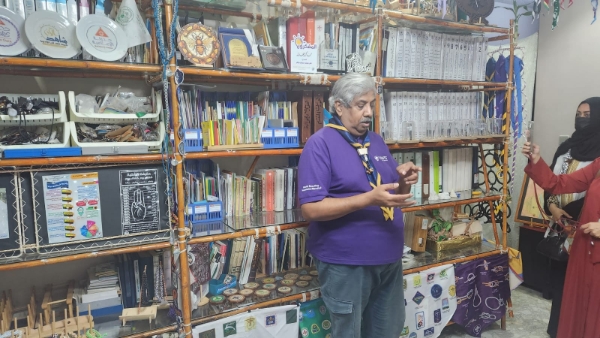 كما قدّم محراب شرحًا وافيًا حول التدرج الكشفي ومراحله وقوانينه ذات البنود العشرة، في طرح يجمع بين الخبرة والتاريخ والدلالة التربوية. واطّلع الوفد على المعروضات المتنوعة داخل النادي الكشفي، والذي يضم أرشيفًا متكاملاً يوثق مسيرة الكشافة عالميًا ومحليًا، إضافة إلى مقتنيات نادرة جمعها محراب خلال أكثر من 53 عامًا من العمل الكشفي، تشمل المناديل والعُقَد والعصي والشارات والباجات والبوصَلات والأسطرلابات والأوسمة والشهادات والكتب المرجعية وغيرها من الأدوات والقطع اليدوية.